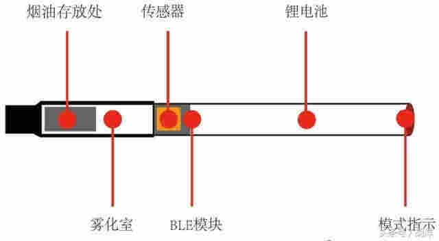 市場上出售的電子煙構造大同小異,主體上都有提供霧化動力的鋰電池,制霧的霧化室和煙油存放處,煙油是制霧的特殊材料,煙油中含有尼古丁、香料、原液、有些牌子還會加上一些所謂的維生素液,在制霧后,這些成分均可以形成細顆粒物被吸入人體,甚至最深處的肺泡中。