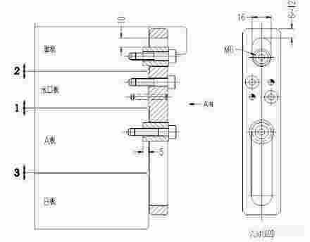 當模具上無空間裝限位螺絲或特殊要求時,可用水口拉板限位,使用水口拉板限位時根據需要選用不同品牌的標準件,同時也可按下面結構進行自制。