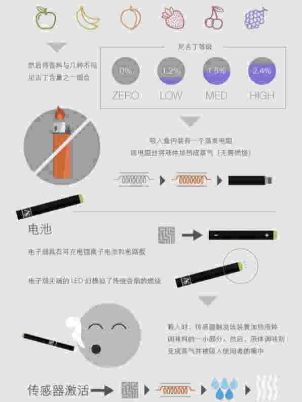 最后,部分電子煙的煙液里加入了多種添加劑和調味劑,如巧克力味、咖啡味,還有檸檬、草莓、芒果等水果味,這些添加劑或者調味劑在加熱以后會產生有害物質,存在不明健康風險。