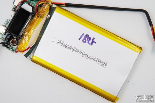 這款移動電源使用的是單片10000mAh的鋰離子聚合物電池包,標準電壓是3.8V。電池兩側均采用了膠帶保護,與PCB板接觸的部分也試用了膠帶進行絕緣。