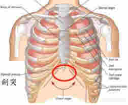 疼痛部位 常位于劍突下方;