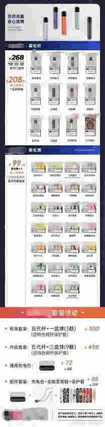現今,市面上有很多的電子煙品牌,較為不錯的就有FLOW福祿電子煙,FLOW福祿電子煙外包裝采用藏藍色主色調,白色品牌名字,整體簡潔大方,中間有易拉條,打開外層,里面還有一層白色為主色調的盒子,黑色字體,與外包裝風格一致,體現出了互聯網公司風格的設計套路。包裝內包含煙桿一只、Type-C充電線一根,三個煙彈以及使用說明書一張。