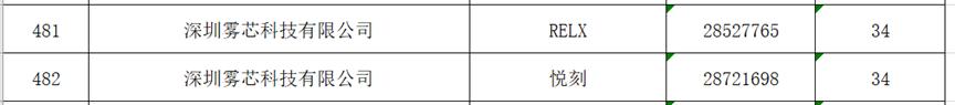 4月25日,廣東省商標協會公布了《2021年度廣東省重點商標保護名錄納入名單》,共計607件商標被納入名錄,RELX悅刻(霧芯科技)的中文商標“悅刻”及英文商標“RELX”均被納入其中。