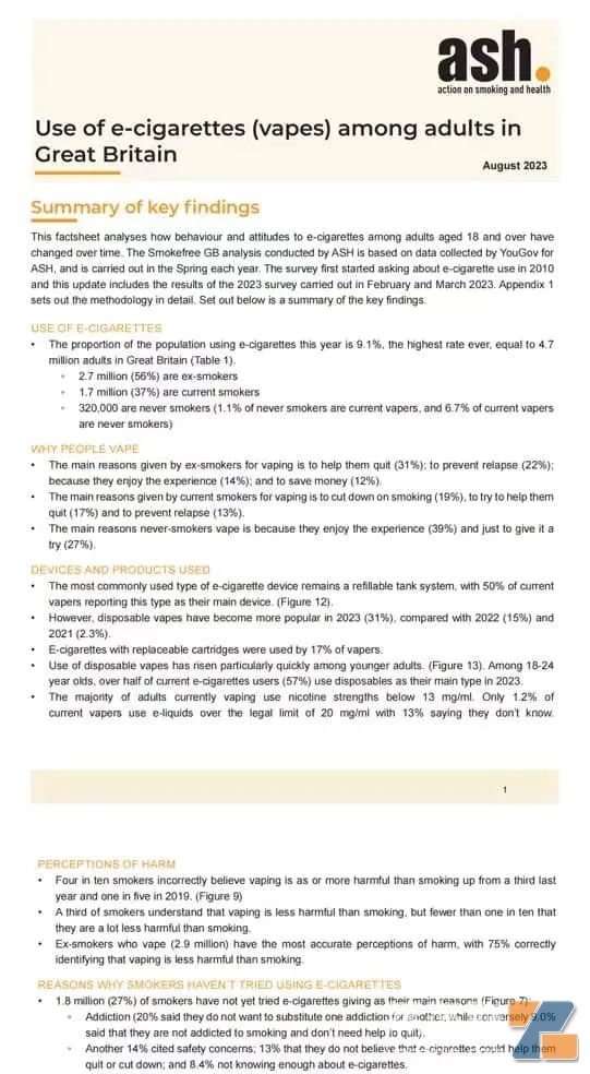 FLOW-wrap: break-word !important">英國非營利組織“反對吸煙與健康行動”(ASH)日前發布了一份調研報告,總結了對英國成年人使用電子煙的最新調查結果。這份報告分析了成年人對電子煙的行為和態度,以及這些意見和行動如何隨著時間的變化。ASH從2020年開始收集這些數據,最新的調查是在今年的2月和3月進行的。