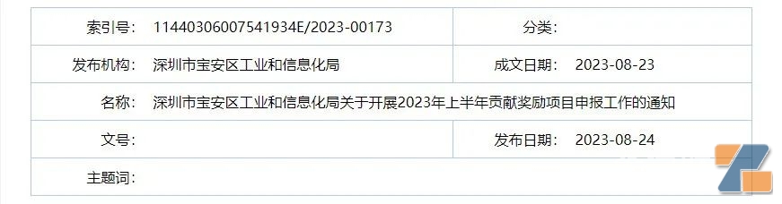 8月24日,深圳市寶安區工業和信息化局發布了《關于開展2023年上半年貢獻獎勵項目申報工作的通知》。通知稱,寶安區工業和信息化局現開展2023年上半年貢獻獎勵項目申報工作。
