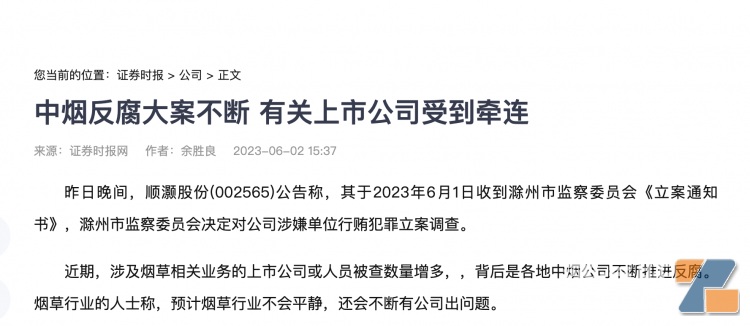 【6】中煙反腐大案不斷 有關上市公司受到牽連