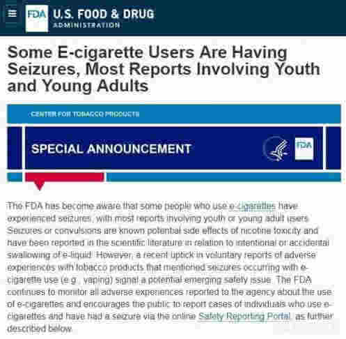 為確定電子煙與醫療事件之間是否存在聯系,美國食品藥物管理局(FDA)剛剛發布了一份有關新的健康風險的特別聲明。