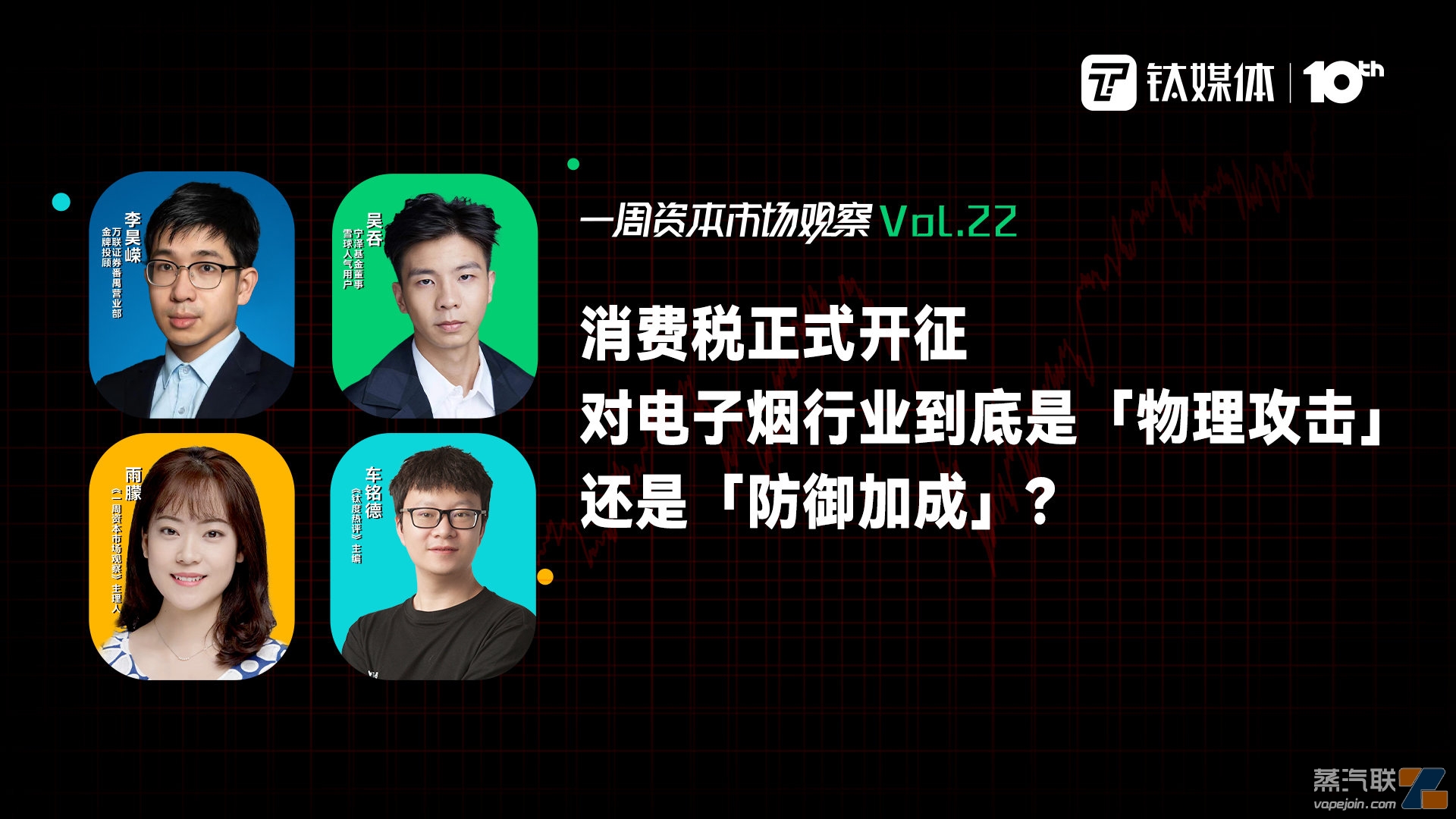 本期節目,《一周資本市場觀察》主理人雨朦對話萬聯證券股份有限公司番禺營業部金牌投資顧問李昊嶸(執業登記編號:S0270619050001),《鈦度熱評》主編車銘德與寧澤基金董事、雪球人氣用戶吳吞,分享了電子煙產業鏈主要包括哪些;思摩爾國際、霧芯科技等電子煙巨頭的核心盈利點在哪里;《關于對電子煙征收消費稅的公告》的發布,意味著電子煙監管政策的靴子落地了嗎;征收消費稅后,電子煙價格是否會上漲,對電子煙行業的競爭格局會產生什么影響;電子煙行業還有哪些新增長機會;醫療器械行業的增長空間來自哪里;OK鏡首次納入集采對行業有何影響;如何看待三只松鼠三季度業績下滑;如何看待meta上周四股價大跌超20%;美團為何再次進入香港外賣市場等話題。