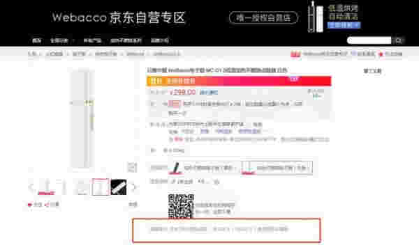 勁嘉股份的合作方云南中煙旗下的WEBACCO電子煙品牌,在某電商銷售平臺上顯示仍能正常銷售,在下方提示稱“未成年人(18歲以下)請勿購買本商品”。