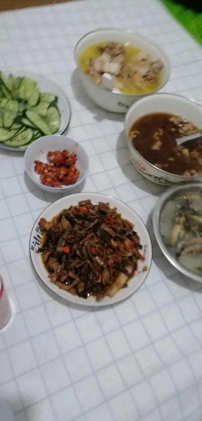 然后讓我老公幫忙看娃,我趕緊擇菜做菜。平日里我喜歡窮講究,手法較慢,一個半小時才做出5菜一湯,而且手還被小龍蝦夾出血了。