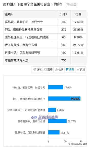 所謂阿Q,就是用精神勝利法麻痹自己,用想象中的行業亂象就要過去了麻痹自己,這部分人數占到了38%。22%選擇了做彈神,18%成為了祥林嫂,逢人就叨叨,14%成為隨手舉報小達人,9%當上了法外狂徒張三。