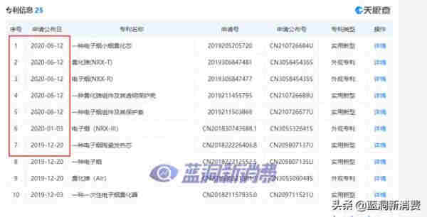 從天眼查可以看到,尼威電子煙在2020年6月申請了多個專利,可以從側面證明尼威電子煙仍在正常運作。