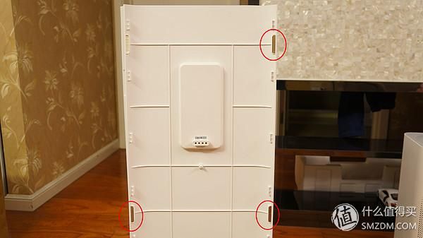 ▲米家新風足足高0.97米,機身采用ABS塑料外殼。前面板可拆下,通過3塊磁吸進行固定