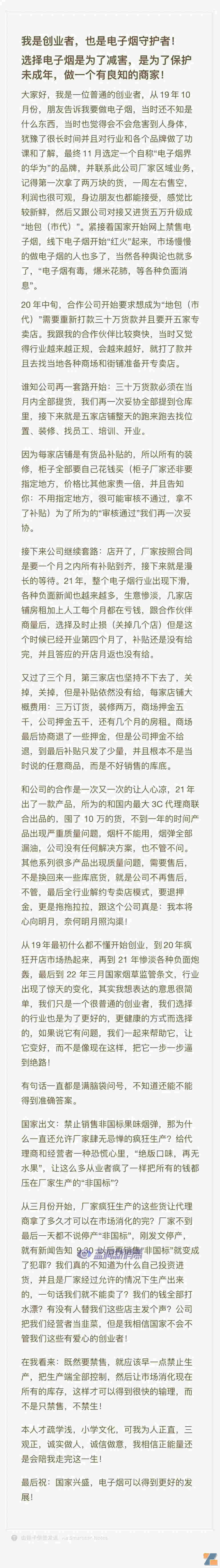 昨天還有一名電子煙向藍洞發來了他的三年開店血淚史,歷經懵懂入行、遭遇品牌割韭菜,再到過渡期的艱難,可以說是眾多電子煙店主都經歷過的三年,一把辛酸淚。